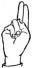 На ћирилици написано НИКОЛИНА УЛЕМЕК састоји се из 14 слова [?]. Исписано ћириличном једноручном азбуком за глувонеме:
